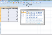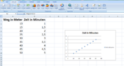 Um ein Diagramm zu erstellen benötigt man zuerst einmal Werte die man graphisch darstellen möchte. Das Beispiel zeigt eine Tabelle mit einer Weg Zeit Angabe, man kann dies mit den verschiedensten Daten machen.