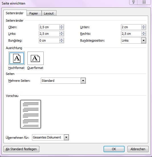 Deutsch: Seite einrichten, verschiedene Funktionen