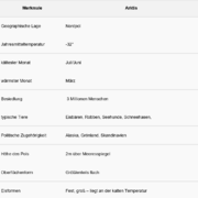 | Besiedlung | Bis zu 4 Millionen Menschen | 80 Forschungsstationen mit 1000-5000 Mitarbeitern arbeiten dort(jedoch Jahreszeiten bedingt) |