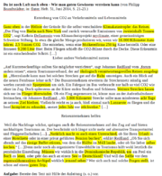 Du hättest noch schreiben müssen in welcher Ausgabe des ,,Fluter“ der Text erschienen ist und das dort auch thematisiert wird wie man den CO2 Ausstoß verringern könnte. Sonst hast du den Namen des Artikels hineingebracht, den Namen des Autors und die Hauptintention in deinen Themasatz hineingebracht. Die Markierungen sind auch an den treffenden Stellen, wie bei dem Hauptgrund des CO2 Ausstoßes und auch den Vergleichen zum Fliegen wie die Molkerei und die Brauerei. Außerdem hast du noch den Fragesatz im unteren Teil des Textes, in einer wieder anderen Farbe Markiert so das man den Teil des Textes gut finden kann, wenn man ihn im Persönlichen Gebrauch hat, denn sonst muss man sich erst mal etwas durch finden bevor man weiß wie man die Markierungen deuten und benutzen kann.