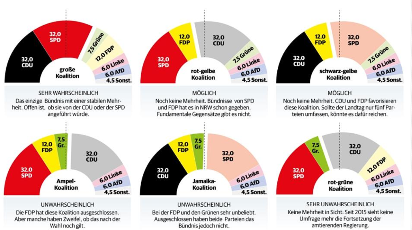Deutsch: Am wahrscheinlichsten: CDU-SPD, SPD-FDP, CDU-FDP
