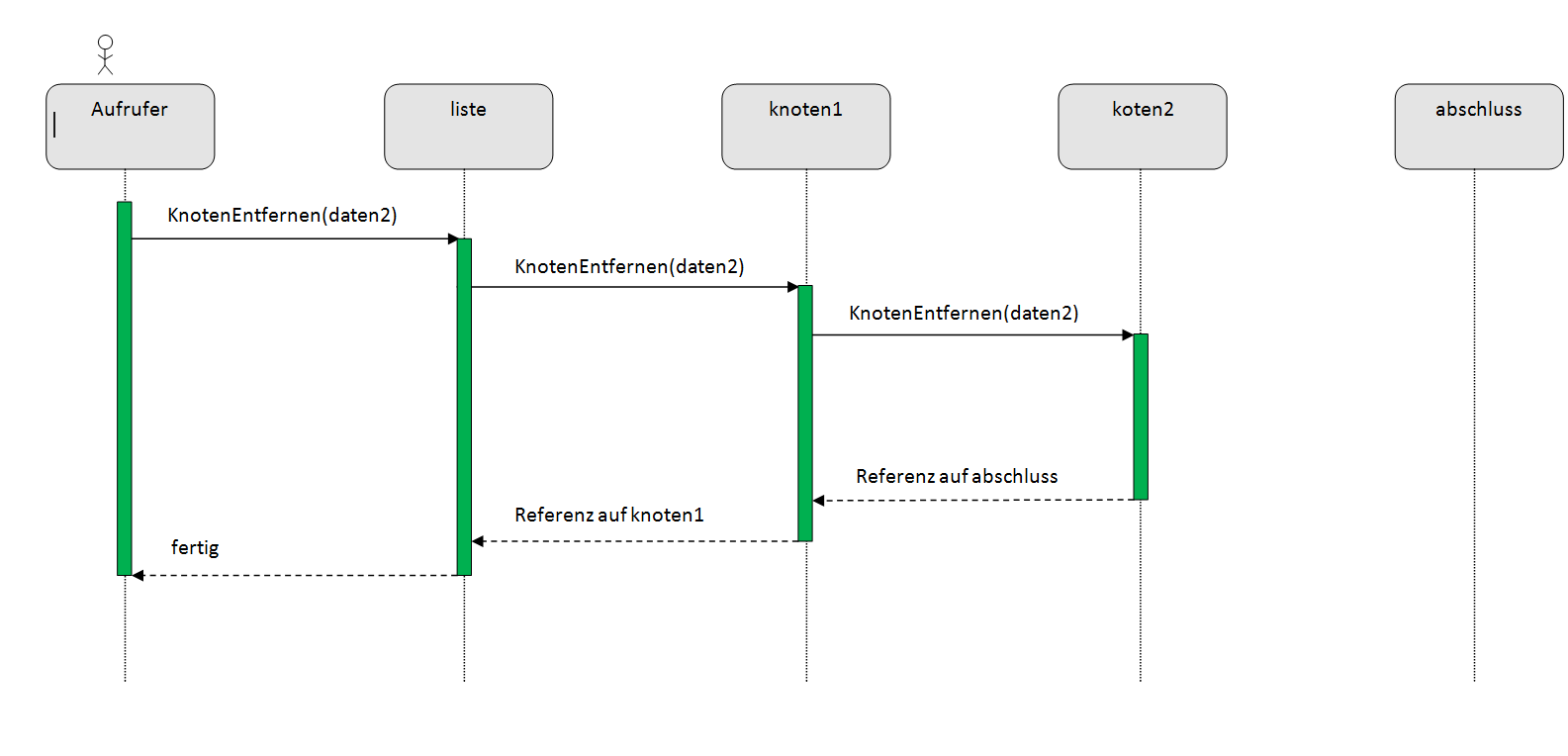 Deutsch: Beispiel Sequenzdiagramm: Entfernen eines Knotens aus einer Liste