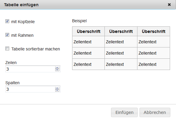 Deutsch: Fenster Tabelle einfügen